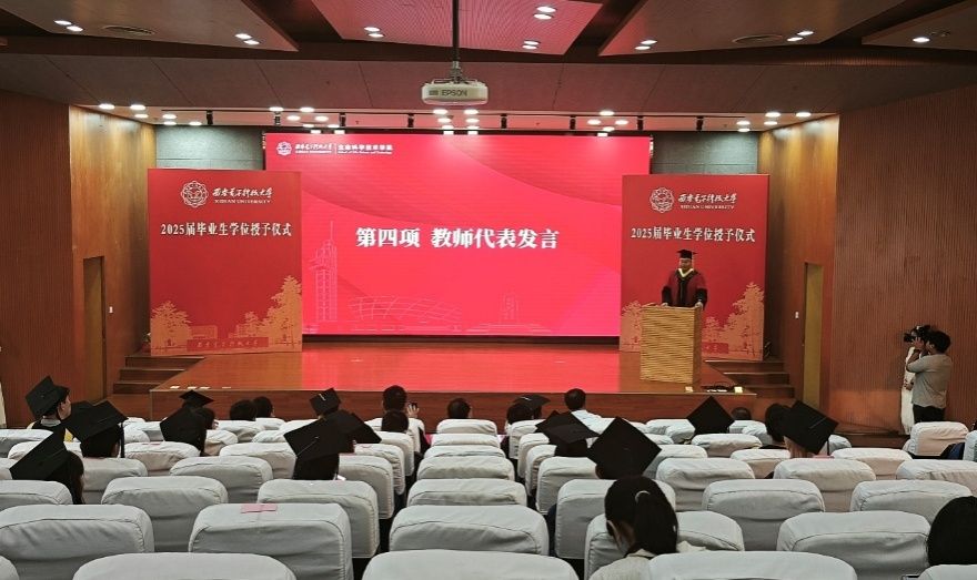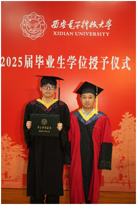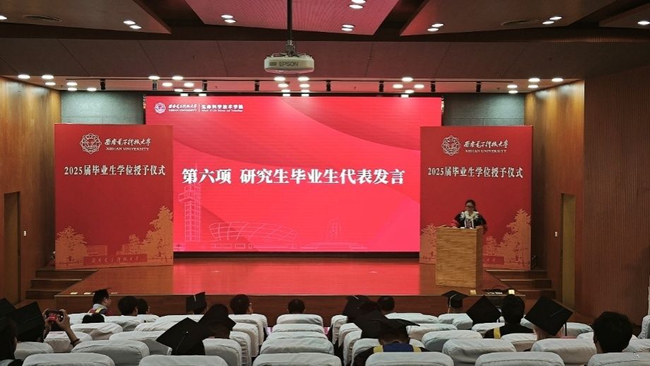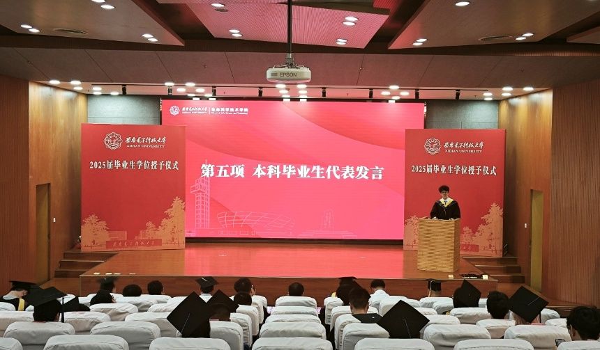 本科毕业生代表乔平彪分享了四年大学生活中的蜕变与收获。他表示,未来将继续传承“艰苦奋斗、自强不息、求真务实、爱国为民”的西电精神,将小我融入大我,把个人梦与中国梦紧密联系在一起,在时代的长征中砥砺前行,赓续奋斗!