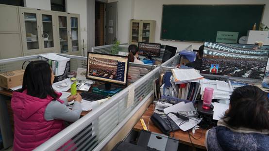 学院师生还分别以党支部、班集体、实验室为单位全程观看了现场直播。