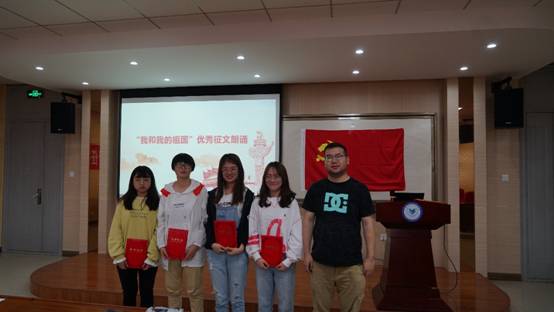 最后,经过在场学生评委的打分评选出了一二三等奖。闫胚娆同学从现实生活入手,文章平易近人却触动人心,在演讲中情真意切,获得一等奖;夏冉同学以昂扬向上的文笔和抑扬顿挫的朗诵斩获二等奖;苗媛媛和安琪有感染力的朗诵获得了三等奖。随后,由辅导员陈伟燊亲自为几位获奖同学进行颁奖。在一曲《我和我的祖国》合唱中,此次“我和我的祖国”主题朗诵比赛圆满结束。