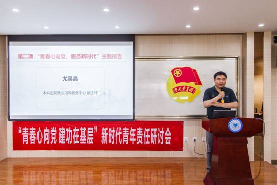 第二项,“青春心向党,服务新时代”主题报告。本科生院就业指导服务中心副主任尤吴晶就365best基层就业情况做了分析报告,同时对基层就业相关政策做了详细解释。
