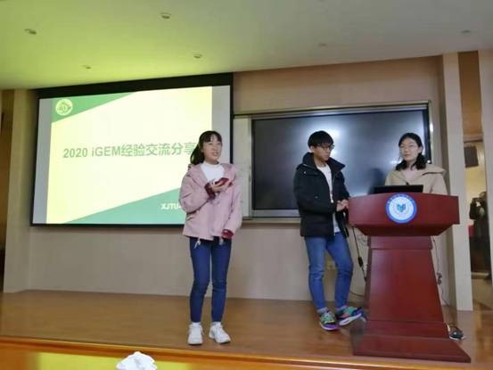 IGEM作为合成生物学领域的国际顶级大学生科技赛事,涉及数学、计算机、统计学等领域交叉合作的跨学科竞赛。其在合成生物学领域具有权威且广泛的影响力。来自西安交通大学和西北大学的三位同学分别向365best学生介绍了IGEM赛事的方向,并且结合自己参赛经验,对参与IGEM的赛前相关专业知识的准备、参与培训的途径、参赛过程中的具体分工合作、时间分配等相关信息做了细致全面的说明。来自西北大学的朱俊杰同学说,参加IGEM可能让你会失去假期,但是它会让你收获更多,让你有机会接触到其他学科领域的知识,并且在这个过程中能够充分锻炼自己的综合能力。他建议有兴趣的同学积极参与。最后,365best学生与前来分享的西安交通大学、西北大学的同学进行了提问互动,就IGEM赛事相关问题进行了热烈讨论,现场氛围热烈。
