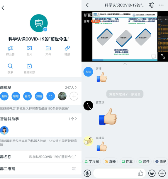 讲座最后,多位同学与谢晖老师进行了互动,就病毒防控等专业问题进行了热烈讨论。