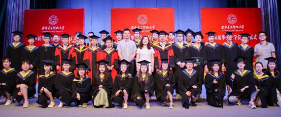教师代表吕锐婵通过讲述自己的故事鼓励毕业生只要坚持,不放弃,就能战胜人生道路上的各种艰难险阻,取得一番收获。研究生毕业生代表陈泽州和本科生毕业生代表夏雨天各自分享了在校期间的学习收获和体会,表达了对学校、学院和老师的的不舍和感激之情,并深深地祝福母校发展越来越好!