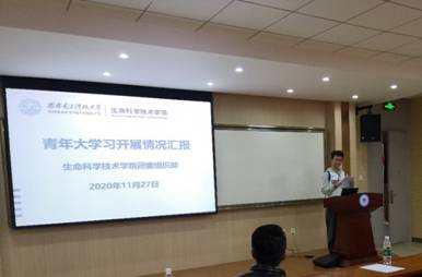 接下来,18级、19级本科生团支部及20级研究生团支部作为优秀支部代表分别就前一阶段的工作做了总结汇报,分享了各自在激励大家积极参与青年大学习,提升支部整体完成率的经验。