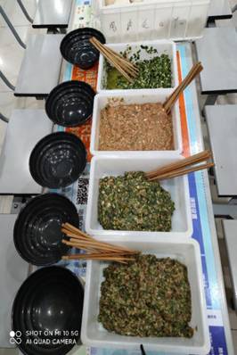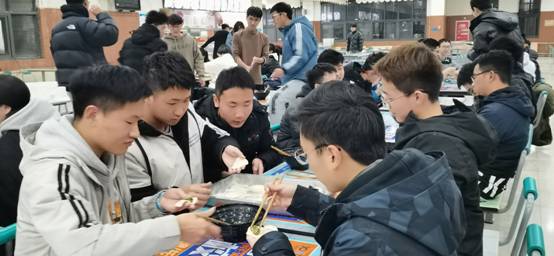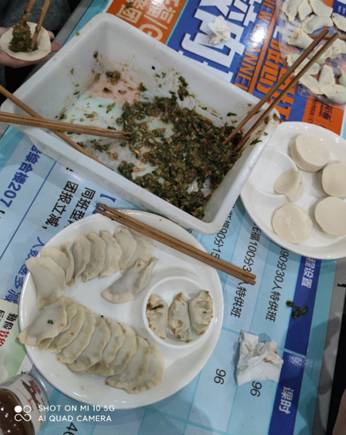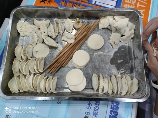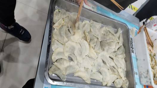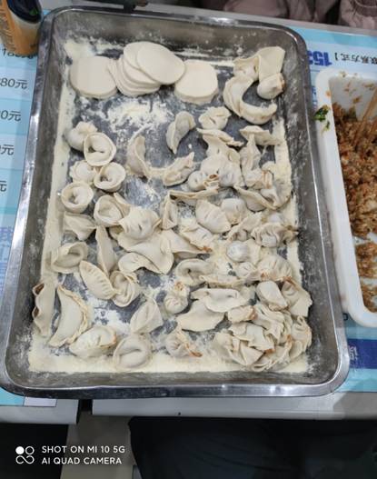 一盘盘饺子,这是同学们一晚上劳动的成果,它们带着同学们的辛劳与期盼,将会在沸腾的热水中沐浴,换发出不一样的生机。