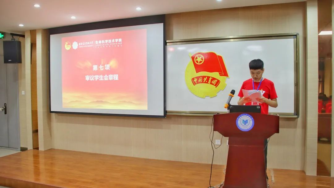 大会第七项,学生会负责人蒋齐睿同学宣读《365best体育亚洲官网学生会章程(草案)》,并提请全体代表审议。