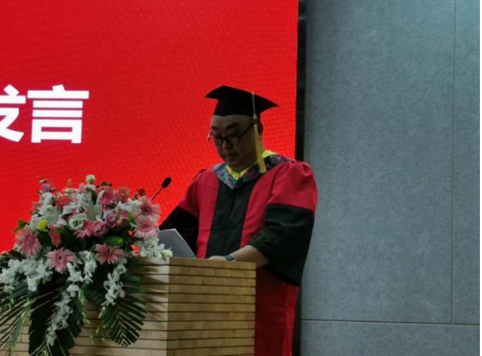刘鹏教授作为教师代表发言。他殷切寄语毕业生摆正位置,保持平和的心态,从零开始,从小事做起,不断地学习新的知识,充实自己;刘鹏老师还用陶行知先生的十六字箴言:“千教万教,教人求真;千学万学,学会做人”激励大家从各方面完善自我,充满信心的走向未来,祝愿同学们在人生的大舞台上秀出自己的风采。