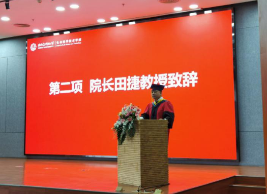 田捷在致辞中首先对即将迈向人生新阶段的2021届毕业生们表示热烈的祝贺和衷心的祝愿!他殷切期望毕业生在国家对生命科学的大力支持下,能抓住当前生命科学快速发展的机会,运用所学知识,为行业的发展和社会的进步贡献自己的力量,实现自己的人生价值。