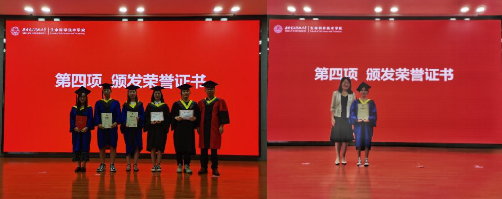 田捷、朱守平、秦伟为2021届毕业生逐一颁发学位证书、施拨穗礼,并合影留念。拨穗礼成,生科院的学子完成了人生中的一次重要蜕变。
