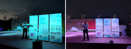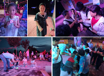 晚上,团队成员来到“金银花百姓大舞台”,这里是村民们吃完晚饭过来娱乐的地方。首先,胡波教授在百姓大舞台上为村民们介绍了这次新冠疫情。新冠肺炎疫情,是新中国成立以来我国遭遇的一次重大突发公共卫生事件。目前疫情继续在全球呈扩散趋势,并且也出现了一些变异病株,因此普通民众的认知和行动是这次战胜疫情的关键因素。接着,团队成员给现场小朋友发放橡皮泥和新冠病毒照片,让他们捏出新冠病毒的形状,这样可以获得小礼品,得到小朋友的热情参与。最后,团队成员为村民发放了防疫物资。
