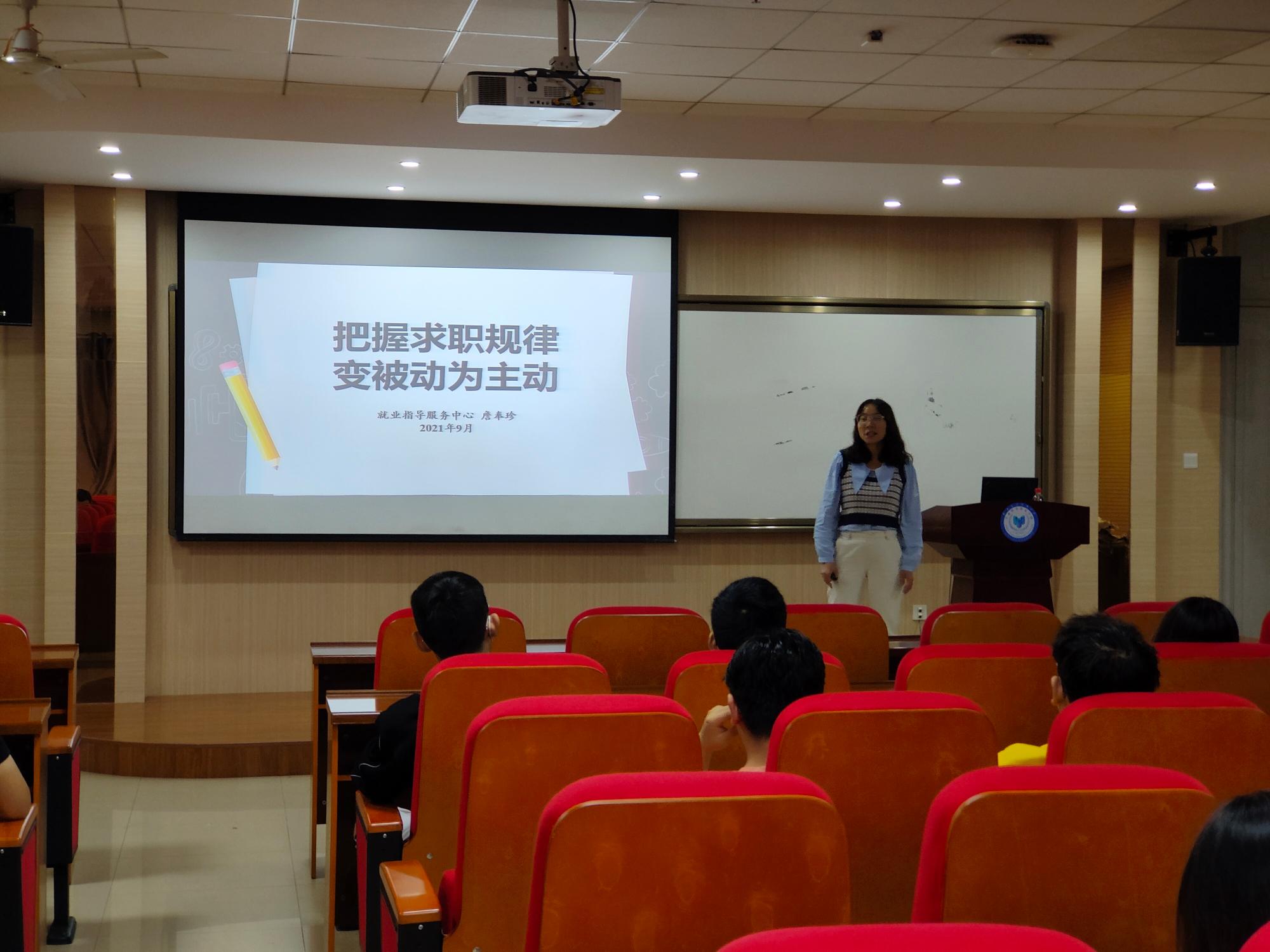 自党史学习教育开展以来,365best坚持把“我为群众办实事”作为党史学习教育的出发点和落脚点,本着“把好事办实、把实事办好、办到师生心坎上”的原则, 2021年9月24日下午,365best举办了“把握求职规律,变被动为主动”的求职攻略讲座,着力营造有利于学生就业的良好氛围,同时帮助学生全面了解当前全球新一轮科技革命和产业变革背景下,就业形势的多样化以及复杂化,助力学生高质量就业。此次讲座由学校本科生院研究生就业办公室主任詹奉珍老师主讲,学院党委副书记崔传贞、辅导员郭瑞、2018级本科生和2019级研究生参加了此次会议。