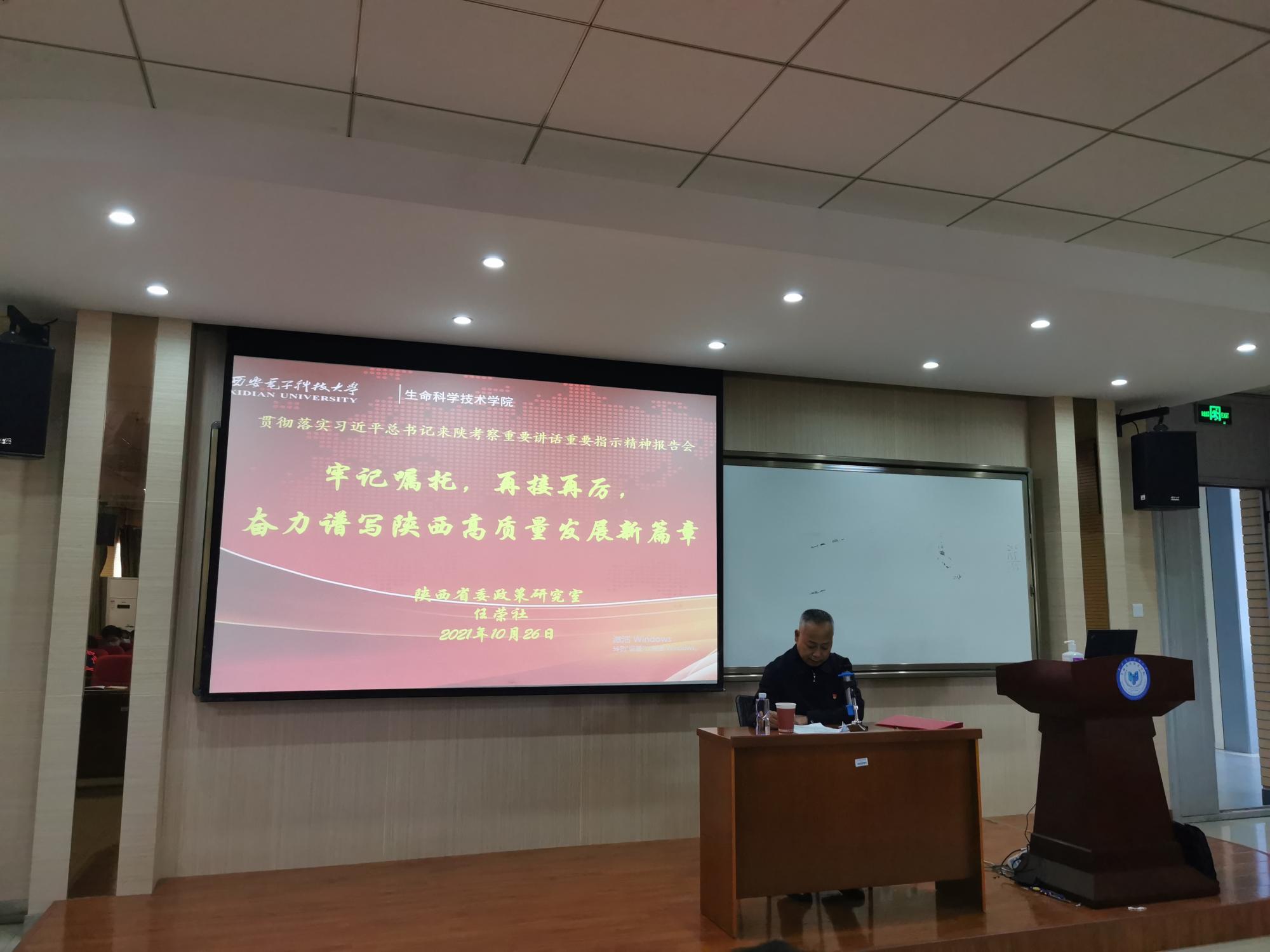 为深入推进党史学习教育,贯彻落实习近平总书记来陕考察重要讲话重要指示精神,生科院于10月26日举办“牢记嘱托,再接再厉,奋力谱写陕西高质量发展新篇章”专题报告会。报告邀请陕西省委政策研究室副厅级研究员、陕西省委贯彻落实习近平总书记来陕考察重要讲话重要指示精神宣讲团主要成员任荣社主讲。学院领导班子、两委委员、党支部书记支委及师生党员代表近60人参加了此次报告会。报告由党委书记王丽玲主持。