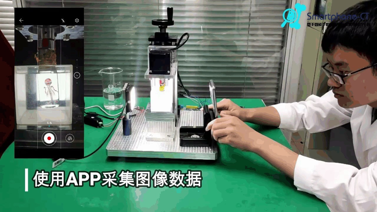 Smartphone-CT: 基于智能手机的成像实践平台是一款易操作、低成本且无辐射的医学成像系统。该平台以光学CT为基础,将X光替换为可见光、将被成像物体换为透明样本,同时创新性地将光学相机替换为智能手机相机,并在手机上开发了完整的控制端APP。这些改动在大幅提高了光学CT的易用性与安全性的同时,将其成本大幅降低。使用智能手机还有利于提升教学趣味性,吸引学生来了解其成像原理并动手实践,做到了“寓教于乐”。