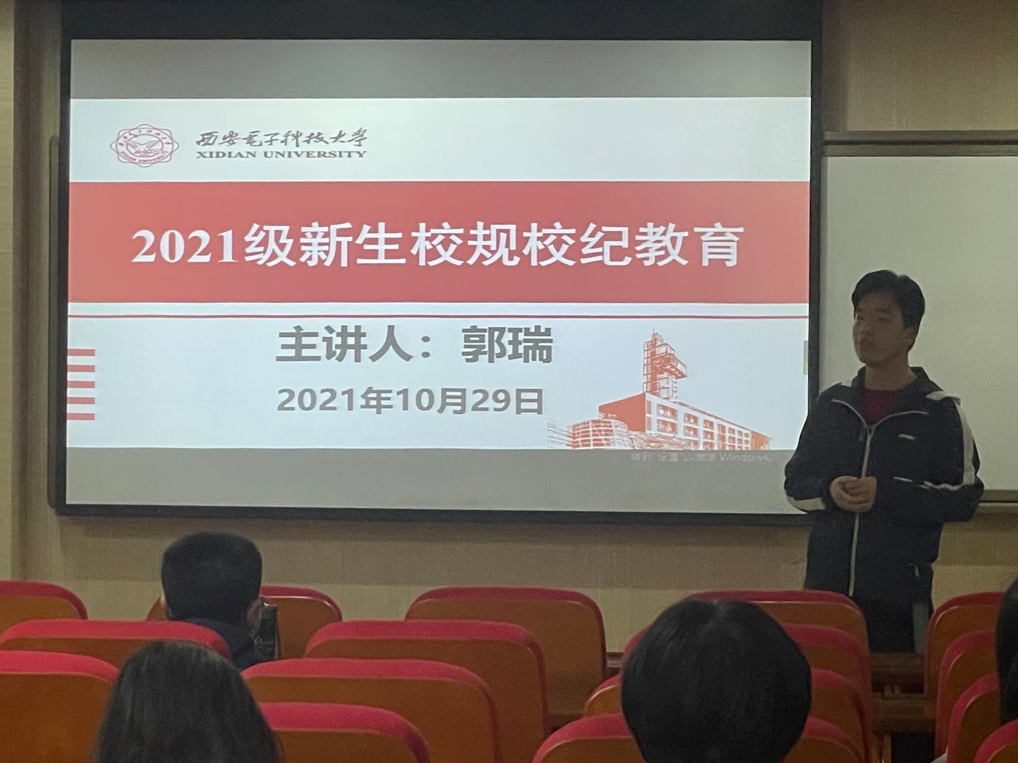 “不学礼,无以立。”10月 29日,365best体育亚洲官网在G420召开了主题班会,开展遵纪守则主题教育。在《学生手册》线上学习与测试的基础上,辅导员郭瑞强调了其重要意义,并从教学管理、学生管理、学生服务几个板块入手,带领学生读懂学生手册,了解学校规章制度,强化自身规则意识,并鼓励同学们会后细读学生手册,从中撷取自身需要的信息,强化学习,规范自身。同学们认真聆听,对《学生手册》有了更深入的了解,收获满满,受益匪浅,并表示以后定会明理守则,遵守校规校纪,把纪律与礼仪内化于心底的沃土,外现于行动的点滴,彰显西电学生的良好风尚,以积极的精神面貌喜迎校庆。