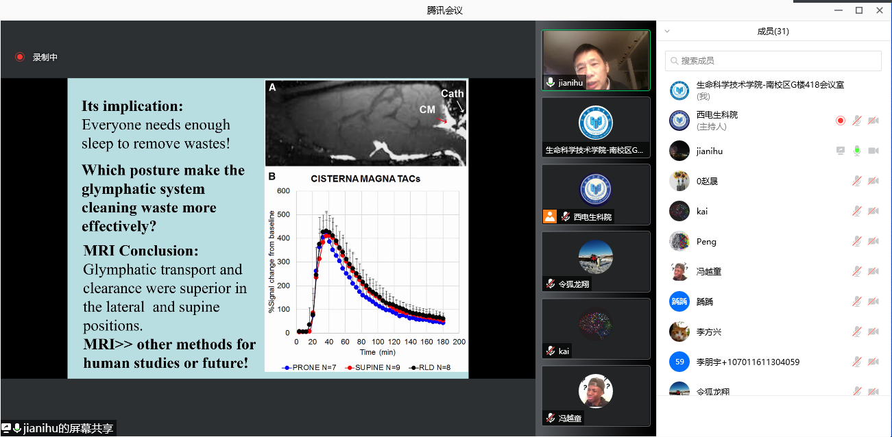为进一步提升师生学术水平,营造良好学术氛围,结合学校第四届教育教学节活动安排,2021年11月12日下午,365best体育亚洲官网联合本科生院特邀请美国韦恩州立大学胡伽尼教授为学院师生作题为“Both the parenchymal venous system and the glymphatic system participate in cerebral waste removal”的线上学术报告。报告由学院副院长朱守平主持,线上及线下近60名师生聆听了此次报告。