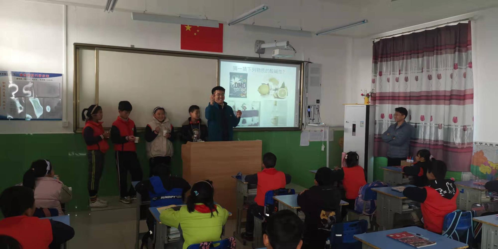 科学实验趣味强,科普宣传共进步。学院杨鹏老师和博士生闫浩浩给小朋友上了一堂生动有趣的科普课。“我们如何辨别酸碱”,是杨老师上课之前给小朋友们提出的小问题。他用pH试纸测酸碱度不同的溶液,通过科学实验回答了这个问题,并让小朋友亲自动手尝试,激发了孩子们探索科学的兴趣,赢得了阵阵掌声。闫浩浩以“名侦探柯南”为切入点,通过“鲁米诺荧光反应”告诉大家:为什么不可以做坏事?其中一位小朋友回答道:“我们不仅现在不能做坏事,以后也不能做,并且还要做好事。”本次科普课将实验带入了课堂,将趣味与知识结合,激发了学生兴趣,产生了良好的效果。虽然只有短短的四十分钟,但小朋友们反响热烈,意犹未尽。