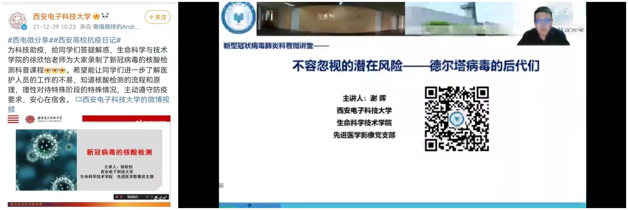 学院教师发挥学科优势,制作发布一系列科普视频,助力疫情防控。先进医学影像教师党支部教师党员谢晖老师录制新型冠状病毒肺炎科普系列微讲堂,深度科普疫情相关知识;徐欣怡老师录制新冠病毒的核酸检测视频,介绍核酸检测的流程和原理,被学校官方转发。