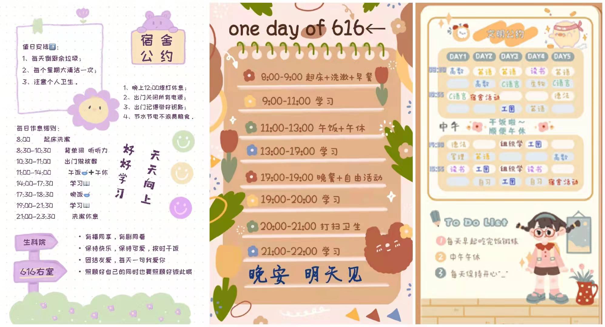 宿舍是大学生学习、生活的主要阵地,也是建立和谐人际关系的基础。为应对当前复杂严峻的疫情形势,进一步推进宿舍文明建设,更好地加强学生的文明修养,营造健康、活泼、文明的生活氛围,本科生党支部开展了“同心战疫,相约文明”宿舍文明公约比赛。各宿舍党员、积极分子率先垂范,带领宿舍成员围绕疫情防控、学风、安全、卫生、作息、生活习惯和兴趣爱好等方面展开积极讨论,制定了切合宿舍实际情况、可操作性强的文明公约,充分展示了各宿舍风采,增强了宿舍成员间的凝聚力。