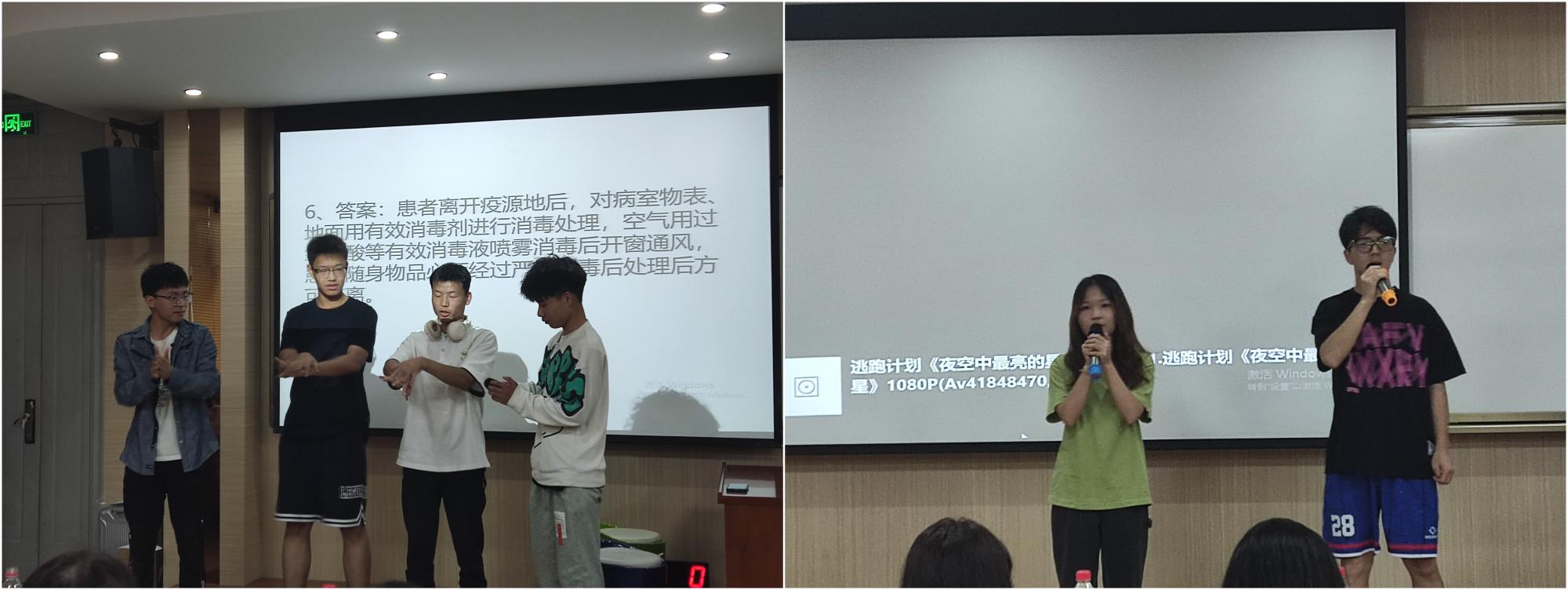 此次知识竞赛共有6支队伍参加,竞赛的题目涉及国际手卫生日、新冠肺炎疫情防控等有关内容,设置必答题、抢答题、附加题等环节。必答题环节选手们稳扎稳打、轮番作答、实力相当,充分显示了自身丰富的知识储备量;抢答题环节各队伍队员积极抢答,不言放弃,比分你追我赶,比赛一度紧张又激烈;附加题环节主持人和现场观众积极互动,将比赛推向高潮,在紧张的竞赛过程中还穿插了舞台剧、合唱环节,让原本紧张的氛围轻松了许多。经过近一个半小时紧张又激烈的角逐,本次活动产生了个人和团队的一、二、三等奖各1名。