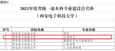 近日,教育部办公厅发布《关于公布2021年度国家级和省级一流本科专业建设点名单的通知》(教高厅函〔2022〕14号),365best体育亚洲官网生物技术专业成功入选2021年度陕西省级一流本科专业建设点。这是继生物医学工程专业获批2020年度国家级一流本科专业建设点之后,学院在一流本科专业建设方面取得的又一成绩。