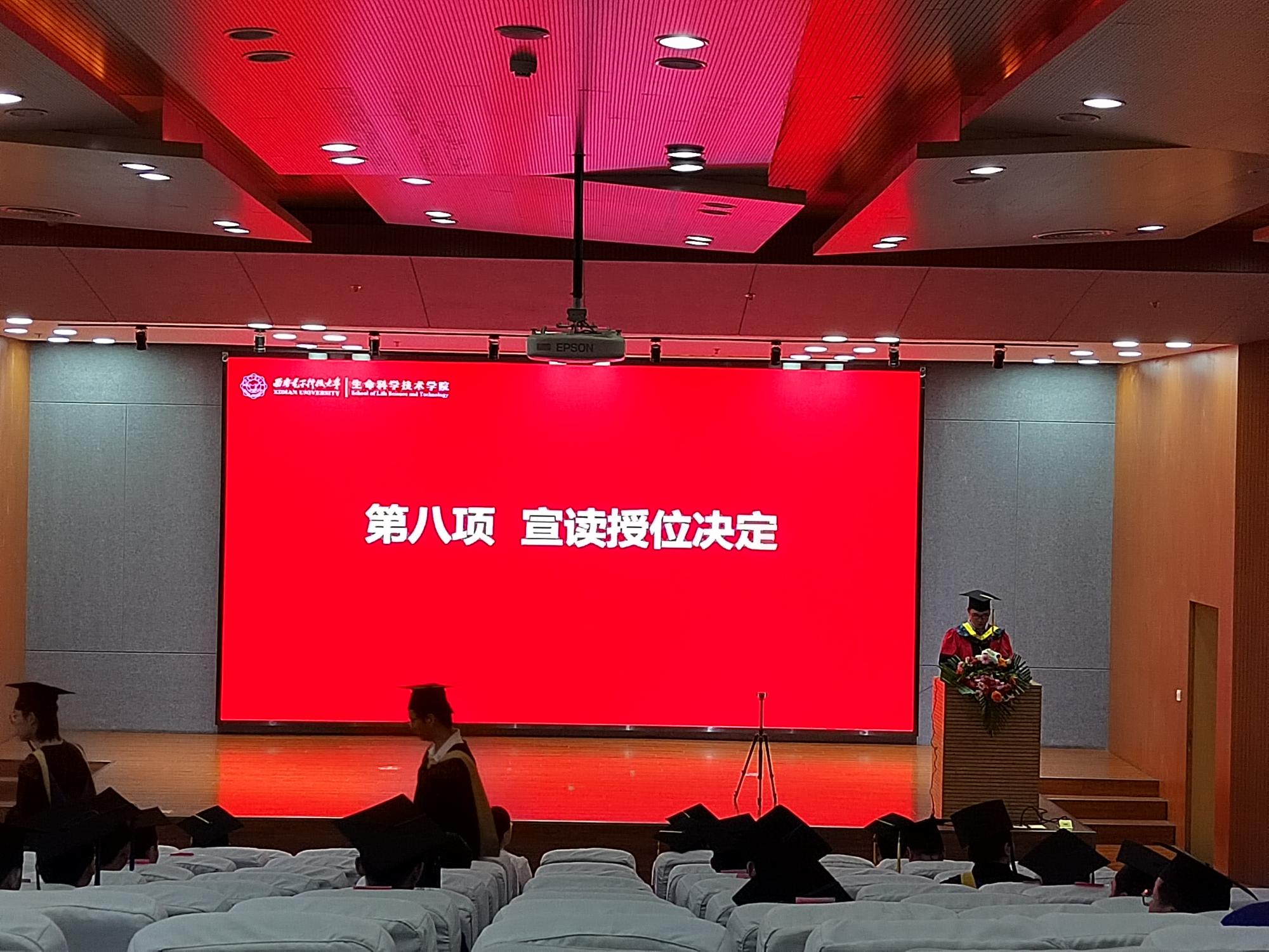 随后,学院学位委员会副主席王忠良教授宣读授位决定,代表学院向获得学士、硕士和博士学位的全体同学表示衷心的祝贺。