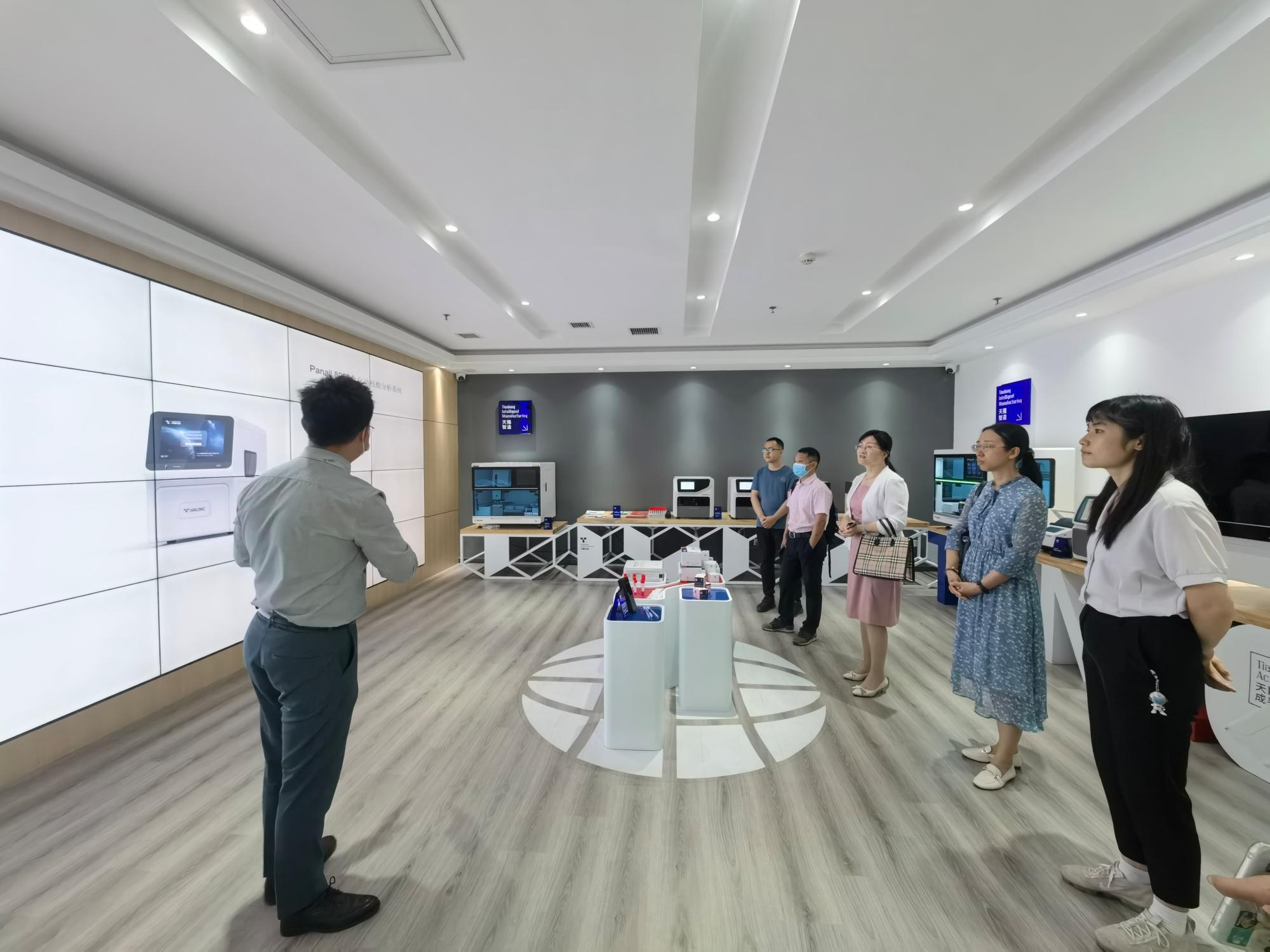 首先,在天隆科技有限公司人事部袁莹的陪同下,大家参观了产品展厅,观摩了天隆科技有限公司在核酸检测、分子诊断、仪器及体外诊断试剂的研发和生产等领域所取得的成就,深入了解了天隆科技有限公司的发展历史、取得的成绩和未来规划。