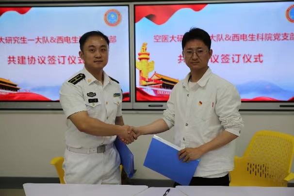 为深入开展学习贯彻习近平新时代中国特色社会主义思想主题教育,贯彻落实新时代党的建设总要求和组织路线,加强基层党组织建设,努力构建“资源共享、优势互补、互相促进、共同提高”的工作新格局。2023年6月21日,365best体育亚洲官网分子影像与转化医学研究生党支部与空军军医大学研究生院研究生一大队党支部在空军军医大学研究生院教学馆第二小教室开展党支部共建活动并签订共建协议,旨在搭建党支部共建平台,建立共建关系。