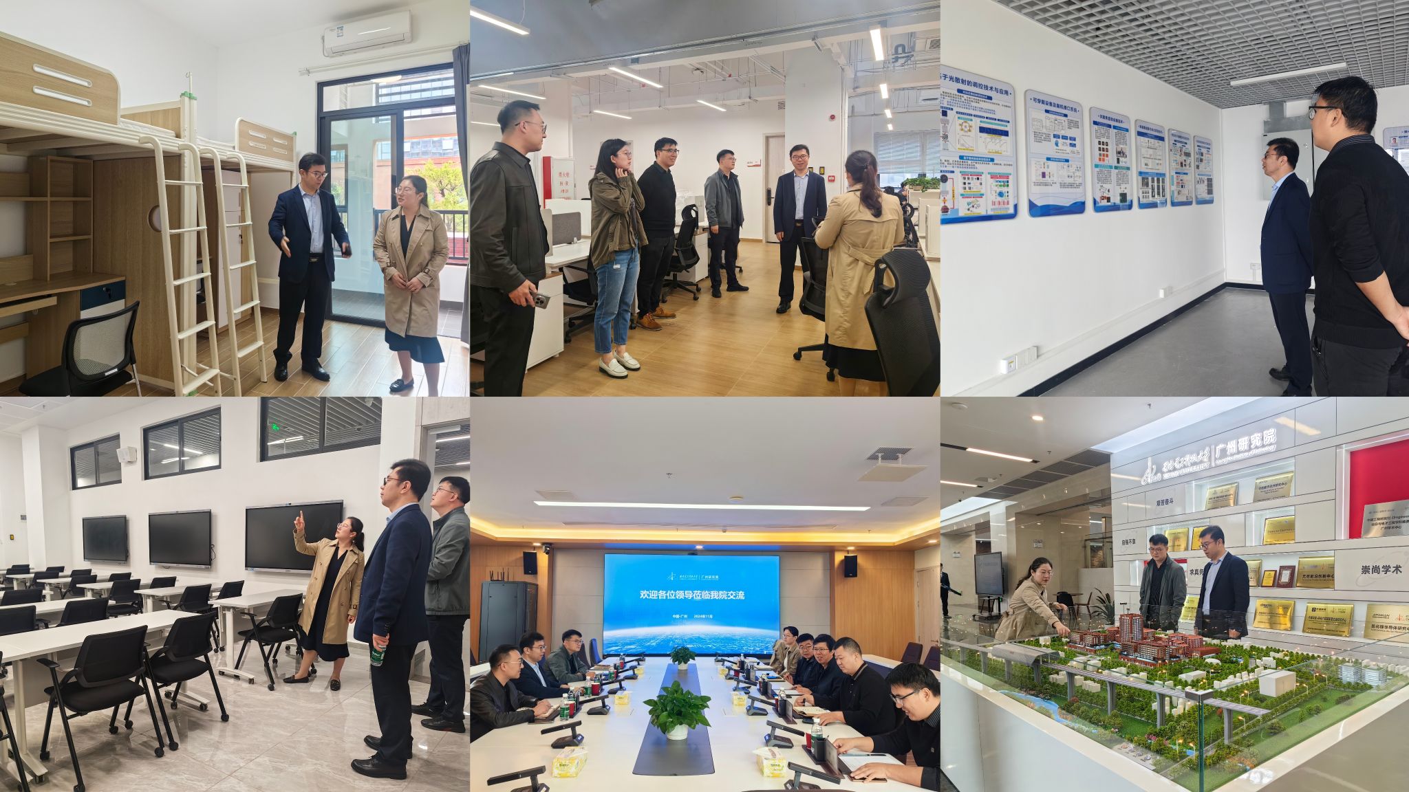 25日上午,王忠良一行来到广州研究院调研交流。首先,调研团实地参观了广研院的校园建筑、实验室、智慧教室、学生宿舍等地。随后,双方开启座谈交流环节。会上,广研院执行院长王从思对学院调研团的来访表示热烈欢迎,并详细介绍了广研院的人才培养、人才队伍建设、科学研究、成果转化和未来规划等情况。王忠良对广研院的热情接待表示感谢,并介绍了生科院的发展历程、师资队伍、学科建设、科研成果和人才培养等情况。