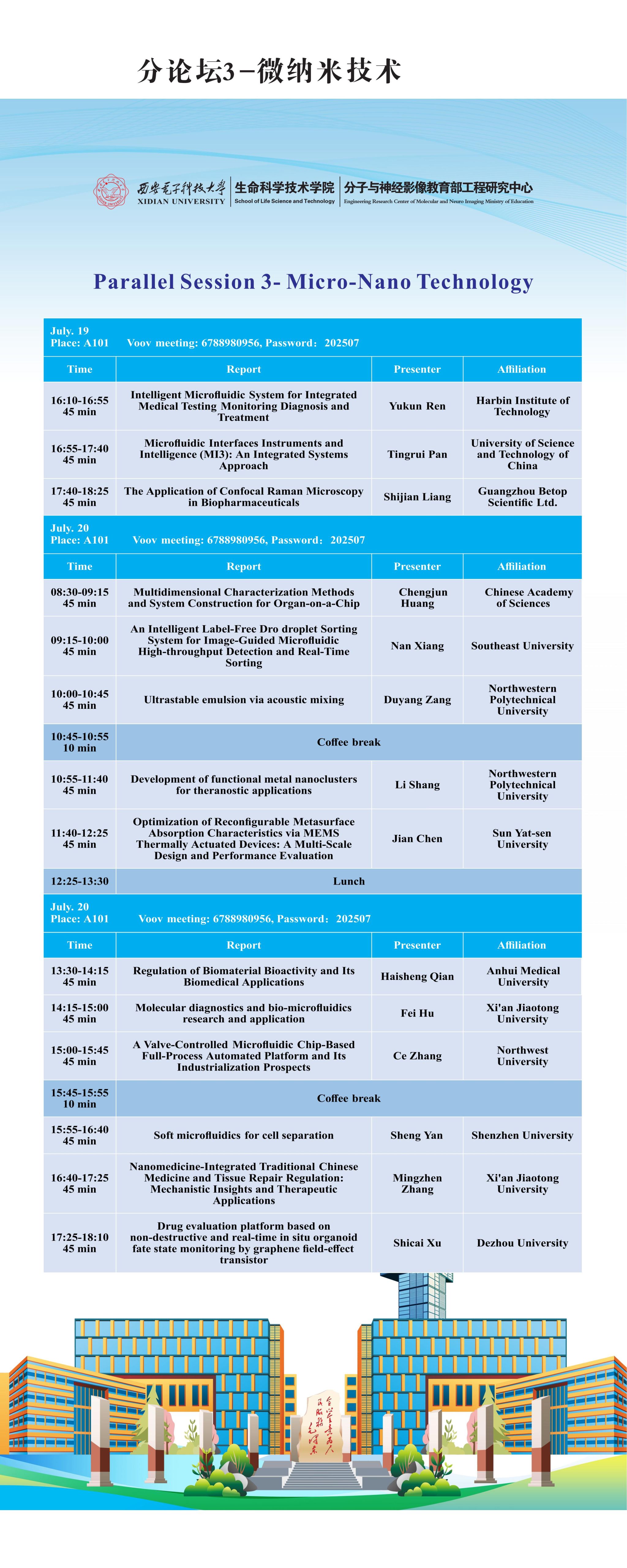 Parallel Session 3- Micro-Nano Technology | A101 腾讯会议号:6788980956 密码:202507 | July. 19 Afternoon and July. 20 All day |