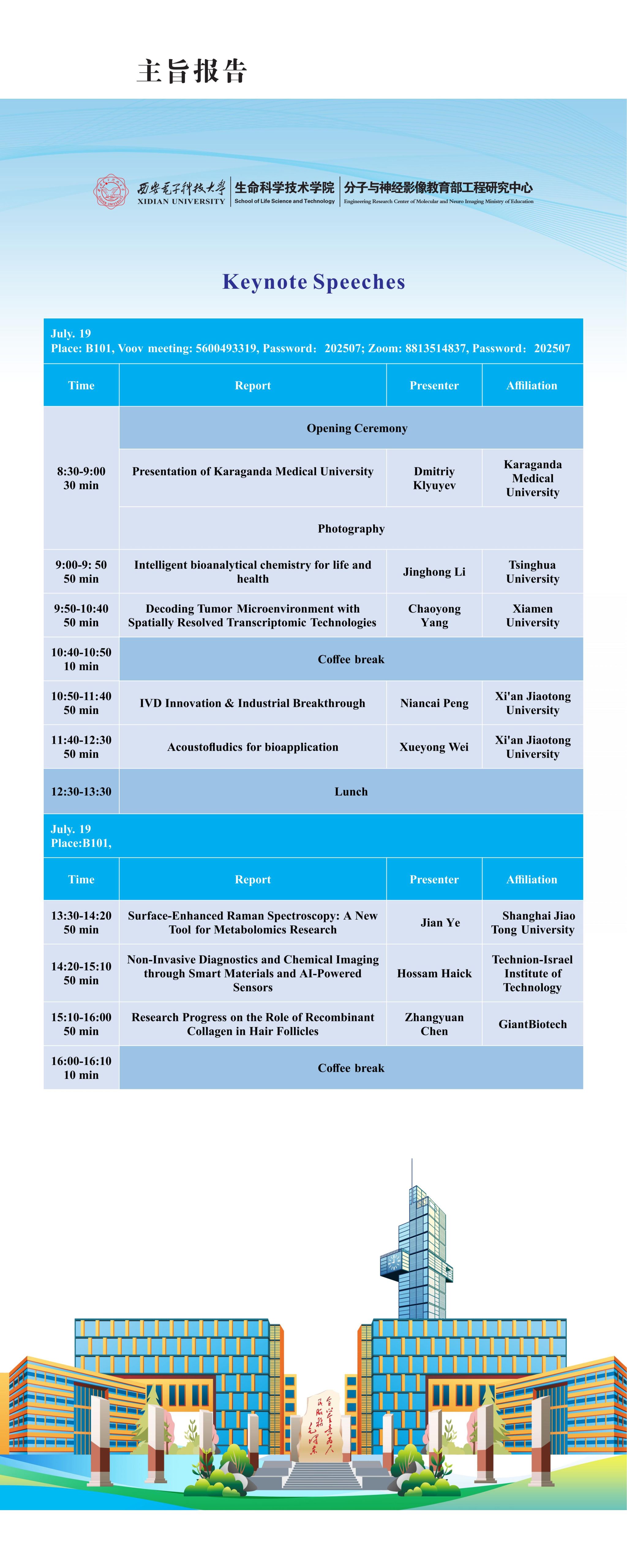 Keynote Speeches | B101 腾讯会议号:5600493319 Zoom会议号:8813514837 密码:202507 | July. 19 Morning |