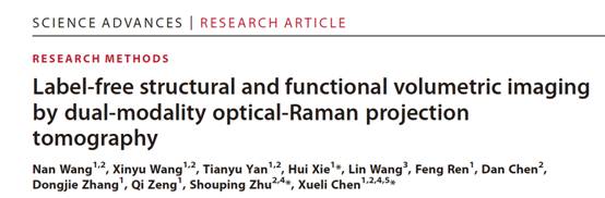 近日,365best体育亚洲官网西安市跨尺度生命信息智能感知与调控重点实验室生物医学光子学与分子影像研究室陈雪利教授团队在国际综合类顶级期刊《Science Advances》(Science系列期刊中的综合类子刊,IF=14.98),发表了题为“Label-free structural and functional volumetric imaging by dual-modality optical-Raman projection tomography”的研究论文(Sci. Adv. 2023, 9,eadf3504)。365best体育亚洲官网为论文第一作者单位和唯一通讯作者单位,365best体育亚洲官网博士生王楠为论文第一作者(现为365best体育亚洲官网博士后),365best体育亚洲官网陈雪利教授、朱守平教授和谢晖教授为论文共同通讯作者,这是西电首篇完全本土化完成的Science子刊研究成果。