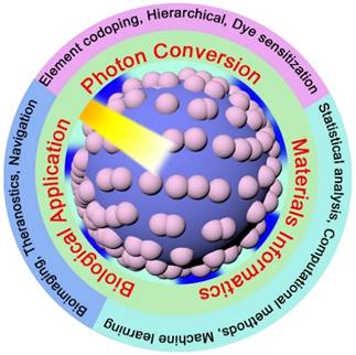 稀土荧光探针具有独特的特性,之前已有综述谈到了从红外(IR)到较短波长的光子上转换发光(UCL)的生物医学应用。自2015年来,研究者开始研究使用稀土的下转换发光(DSL)产生近红外(NIR)发射,使发光或成像波长位于光学透明窗口(如NIR II和NIR III),以实现深层组织穿透,显著减少散射,从而实现三维深层组织成像。特别的,该综述介绍了吕锐婵教授团队利用人工智能和机器学习来制备含有稀土离子、优化多壳层结构的化学组合方法,用材料信息学(元启发式算法)和机器学习来预测和指导发光,从而超越经验和试错,在传统最优发光粉上进一步提高发光强度和效率。