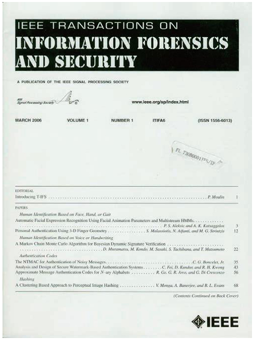 生物特征识别是结合人体生物特征所具有的普遍性、唯一性和稳定性等优点,以人体生理特征或行为特征为识别对象,研究个体身份识别与认证技术。随着网络和电子信息技术的发展,自动生物特征识别已成为一种快速、便捷、可靠的身份认证手段,然而由此产生的物理身份安全隐患问题严重阻碍了其进一步的发展和应用。生物特征加密将生物特征识别与密码学相结合,在避免生物特征模板泄漏的同时保护了生物体所属信息。生物特征识别目前主要研究现场指纹、交叉库指纹的匹配问题以及无接触掌纹的识别问题。生物特征识别与加密研究组致力于将生物特征识别的基础算法,同时结合传统信息安全手段开发实用、高效、安全的密码生物识别系统。研究组在现场指纹的增强领域进行了深入的研究,并在国际顶级期刊PAMI及TIFS上发表了多篇文章。